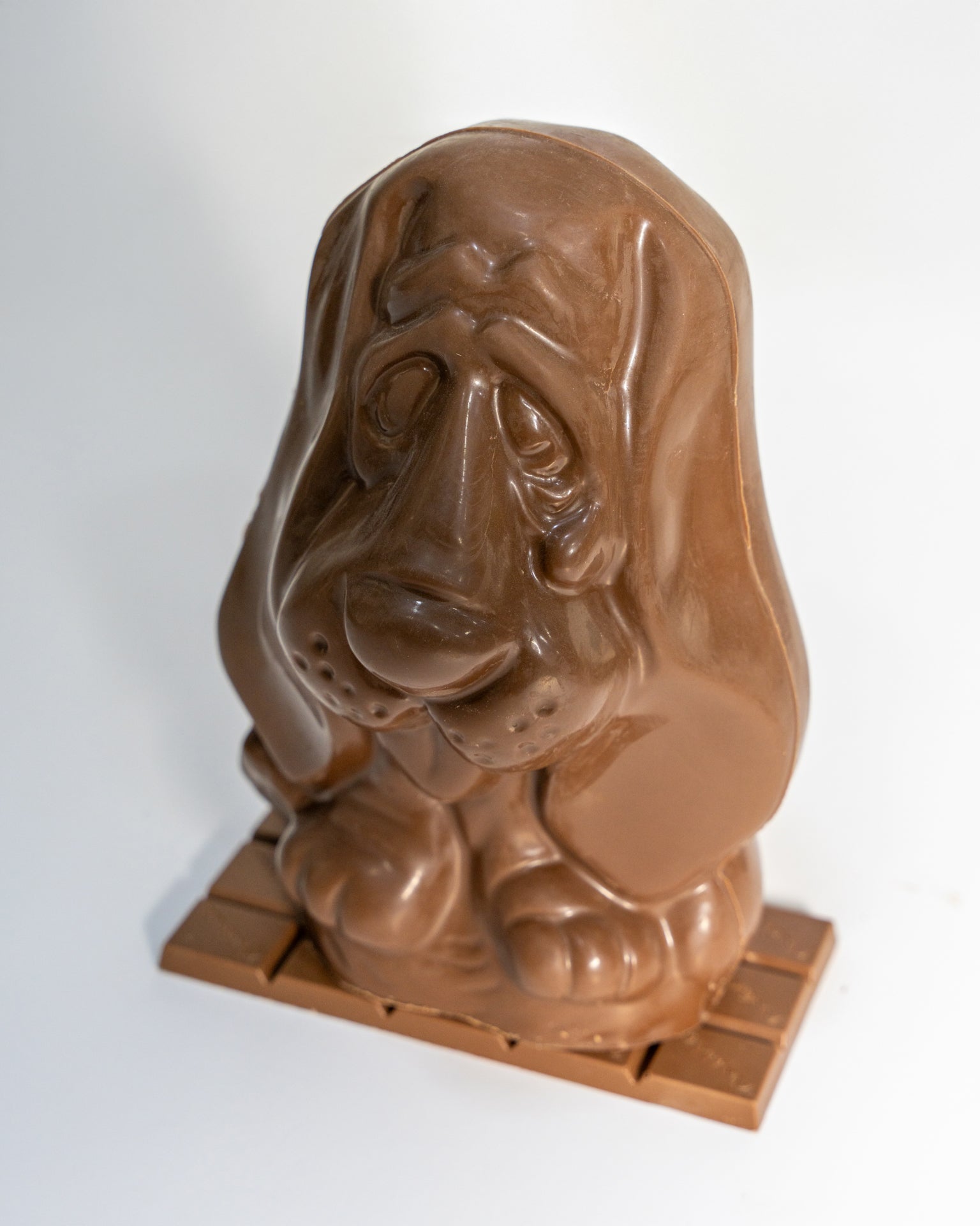 Milk chocolate, shaped in special molds in the shape of a dog, is a decorative product that offers a delicious chocolate experience with its smooth texture and light cocoa flavor. Delicate details such as ears, nose, and facial features are meticulously crafted, giving the chocolate a charming and eye-catching appearance. It's a visually appealing and enjoyable flavor choice for gifting, special occasions, or themed presentations.