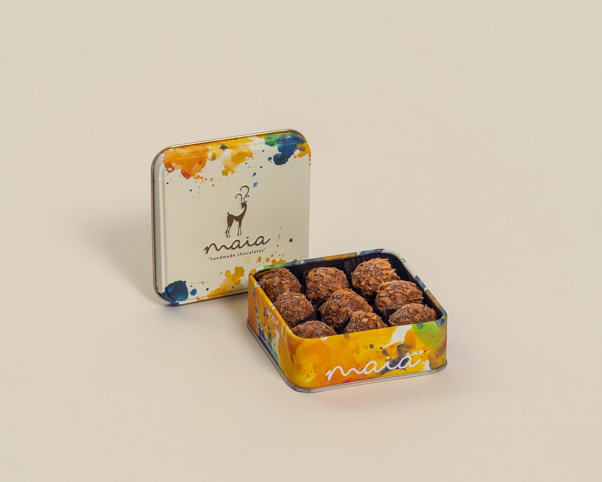 اكتشفوا نكهةً مميزةً من المكسرات مع ترافل الطحينة المصنوع يدويًا في علبة معدنية صغيرة. متعةٌ فريدة، مصنوعة بإتقان.