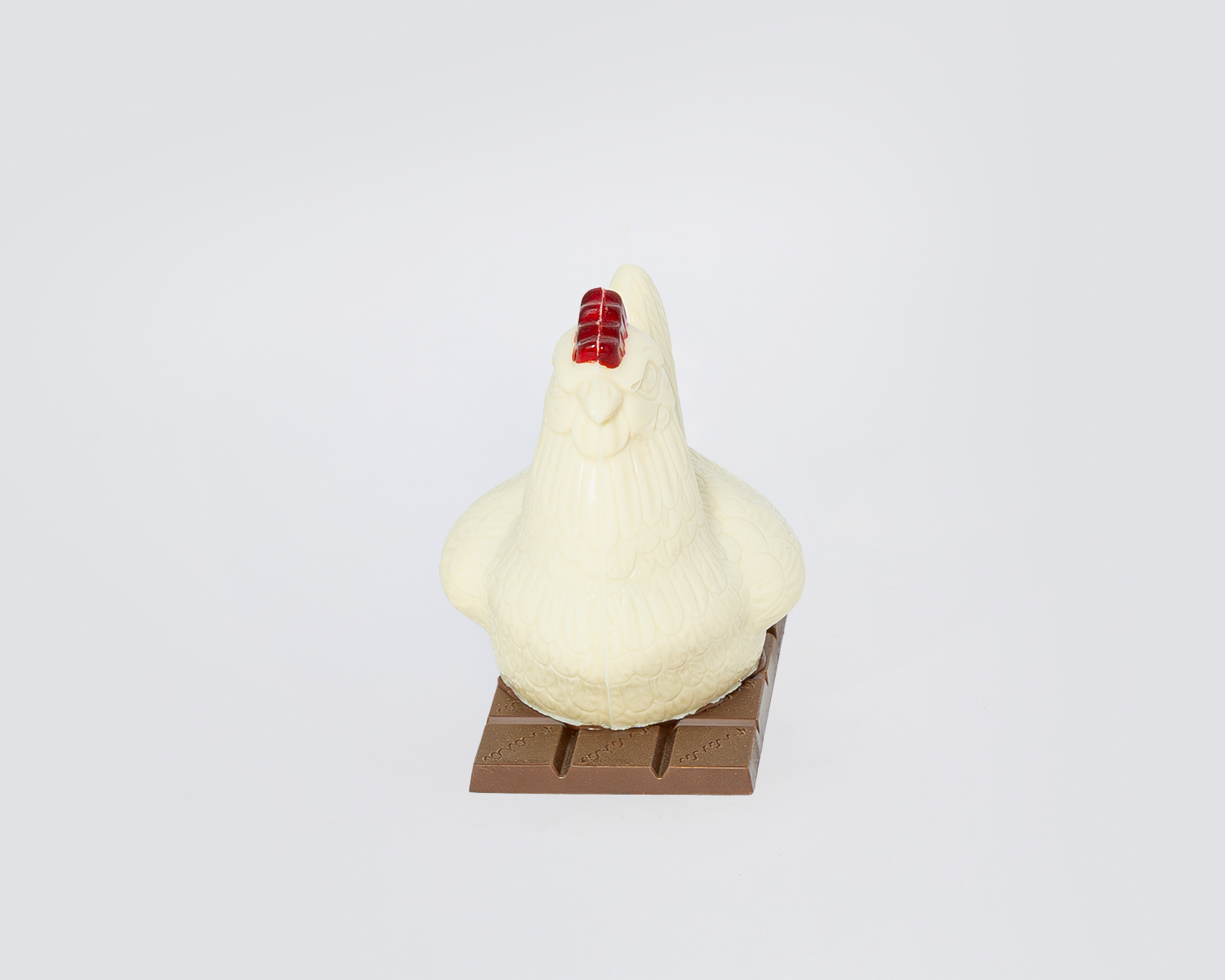 White chocolate, shaped in special chicken-shaped molds, is a decorative chocolate offering a smooth, creamy texture and a light vanilla aroma. The meticulously crafted details on the body, wings, and head give the product a charming and eye-catching appearance. It's an elegant and delightful flavor often preferred for gifting, special occasions, or themed chocolate collections.