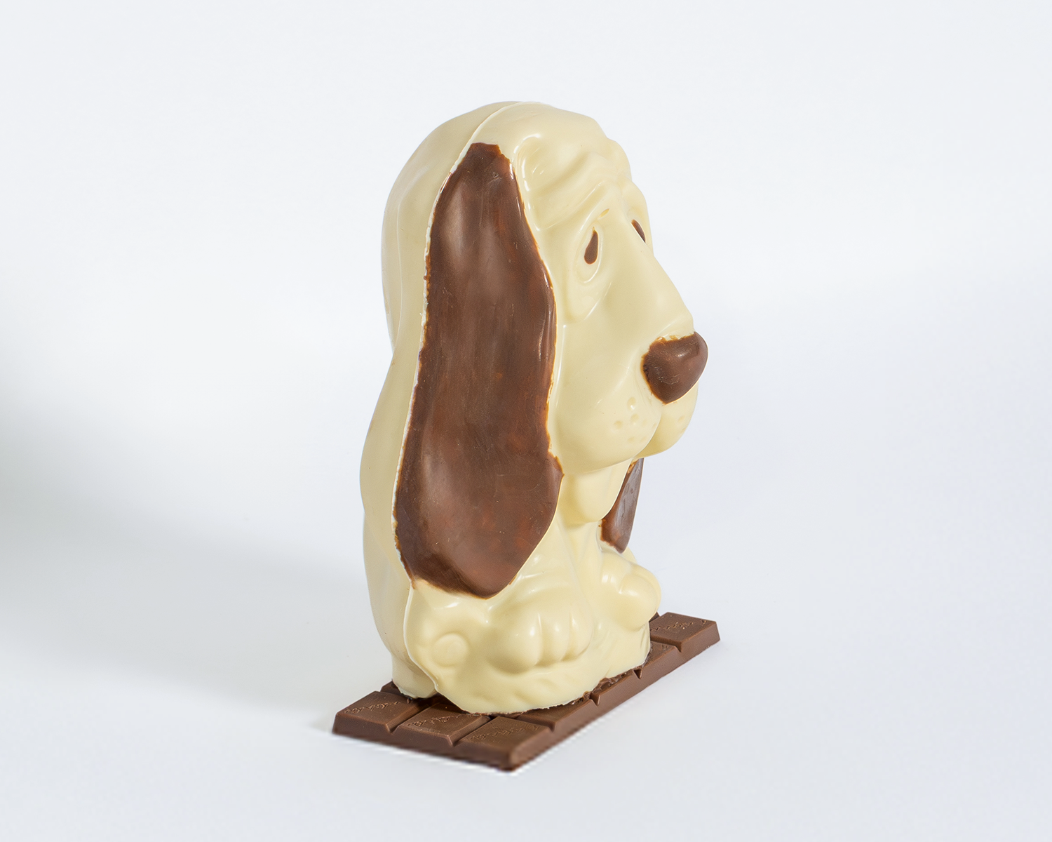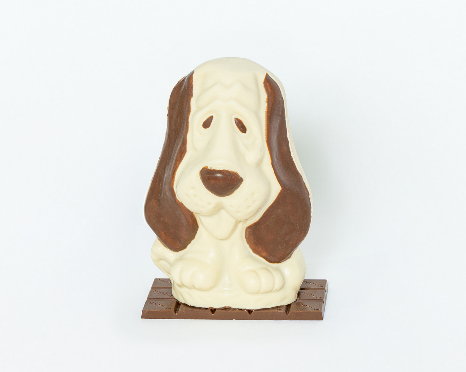 White chocolate, shaped in special molds in the shape of a dog, is a decorative chocolate variety that stands out with its creamy texture and light vanilla flavor. Its design, enriched with intricate details such as ears, nose, and facial features, gives the product a charming and aesthetically pleasing appearance. It's a visually and flavorfully pleasing alternative frequently used for gift presentations, special occasions, and themed chocolate collections.