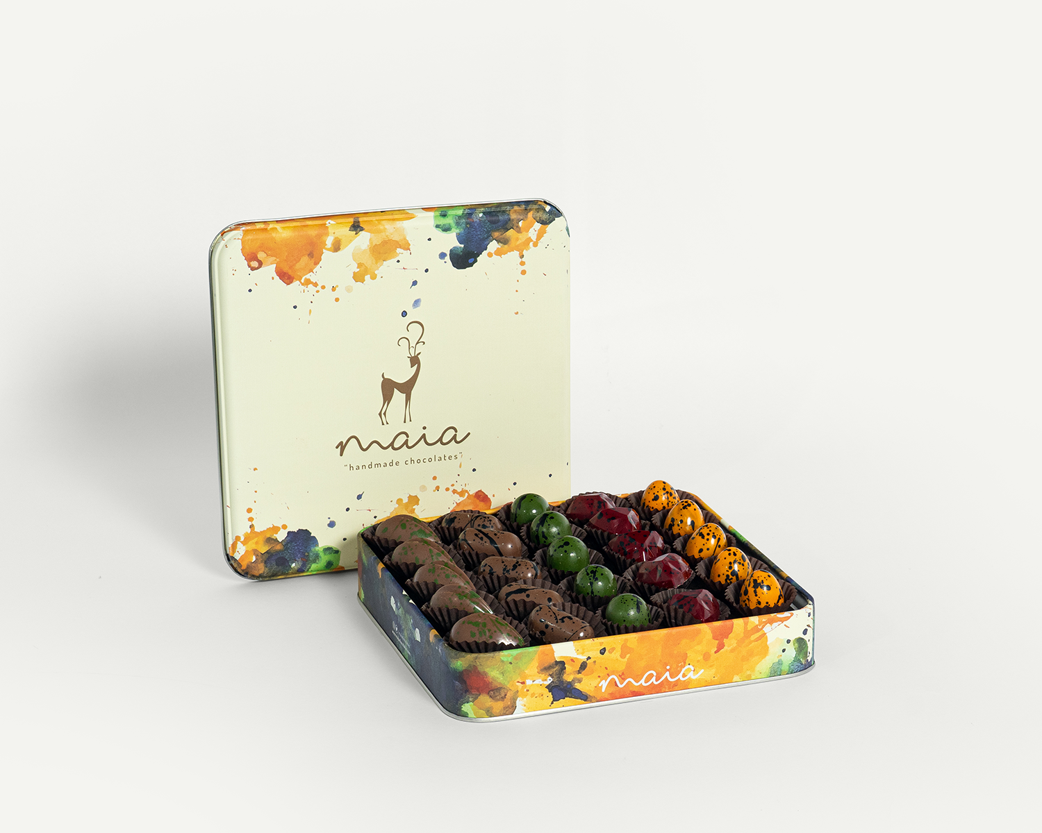 An elegant large box filled with a premium mix of gourmet chocolates.