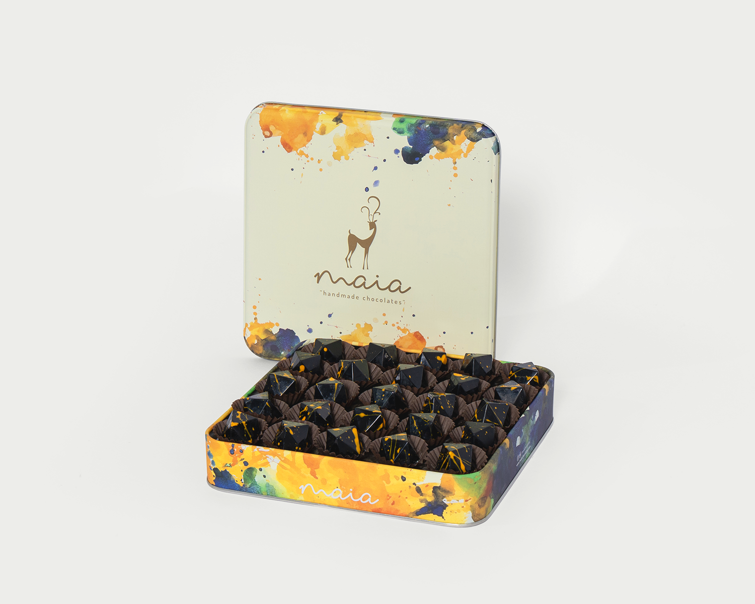 A generous large box featuring our signature tahini–molasses milk chocolates.