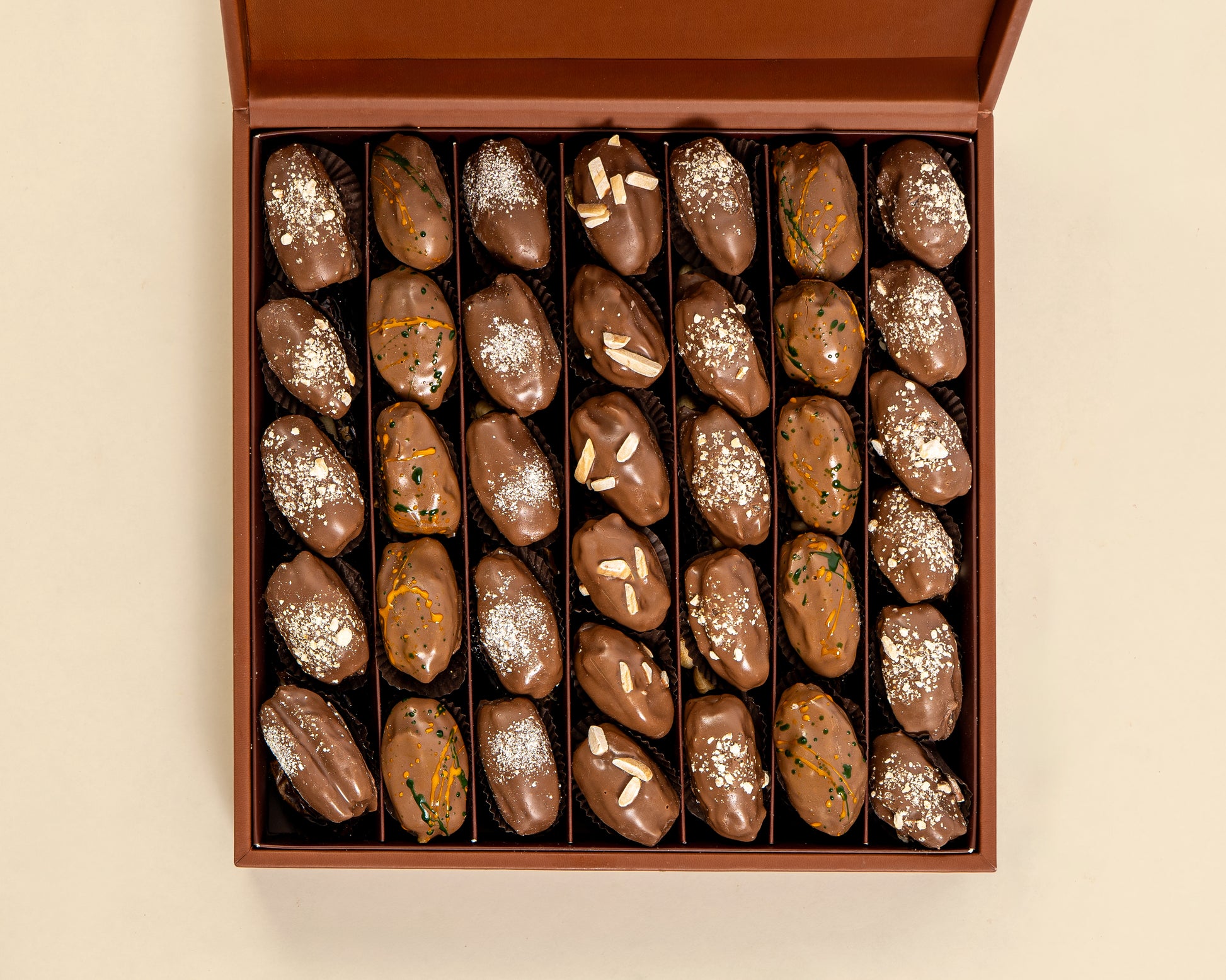 Premium Leather Assorted Chocolate Dates Box – 1000g | 700 QAR