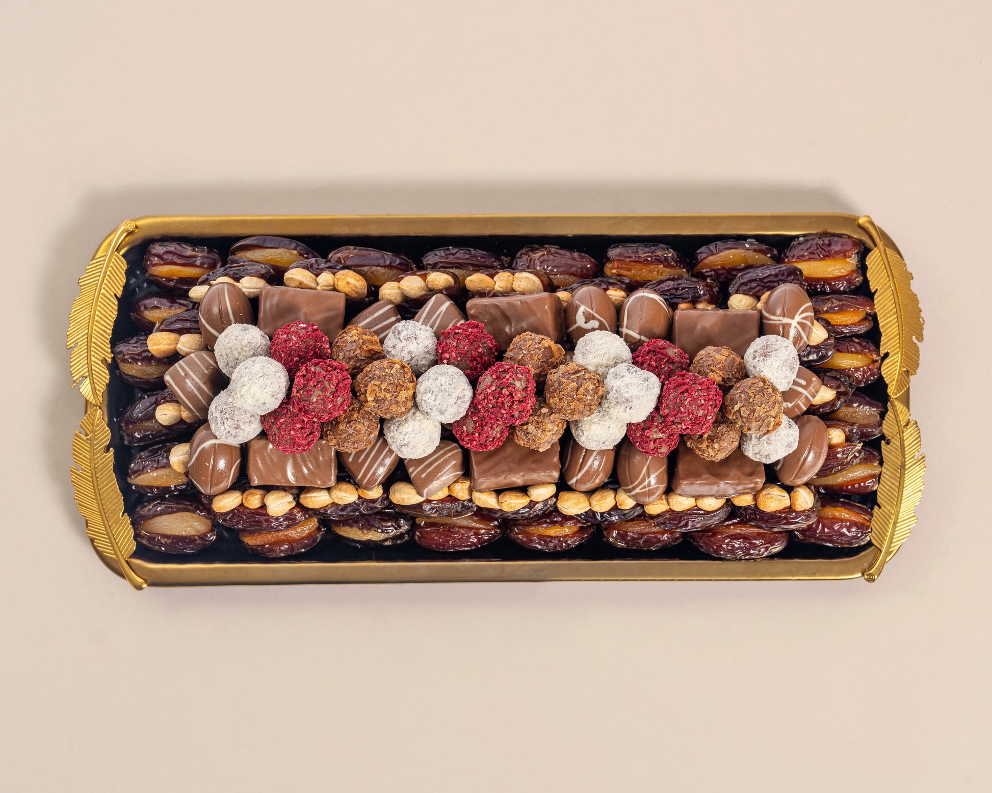 Premium Rectangle Assorted Chocolates & Dates with Nuts Plate – 2800g