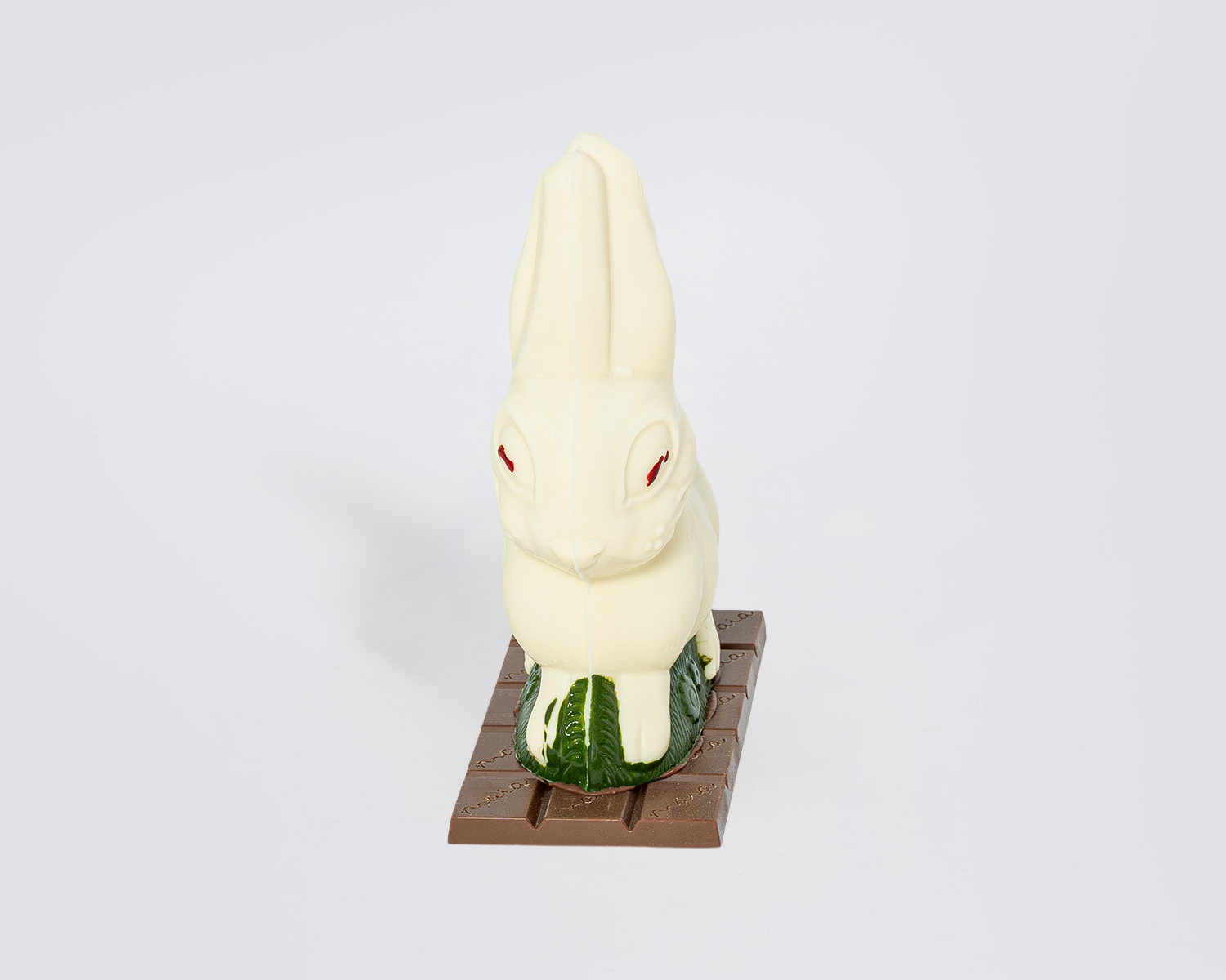 White chocolate, shaped in special molds in the shape of a rabbit, is a decorative chocolate variety that stands out with its creamy texture and light vanilla flavor. Its long ears, paws, tail, and facial details are meticulously crafted, giving it a cute and aesthetically pleasing appearance. Ideal for gift presentations, special occasions, and themed chocolate collections, it's an elegant flavor that's both visually appealing and pleasing to the palate.