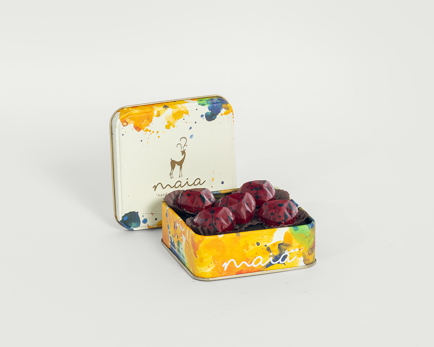 A smooth milk chocolate blended with a sweet cherry finish in a sleek small box.