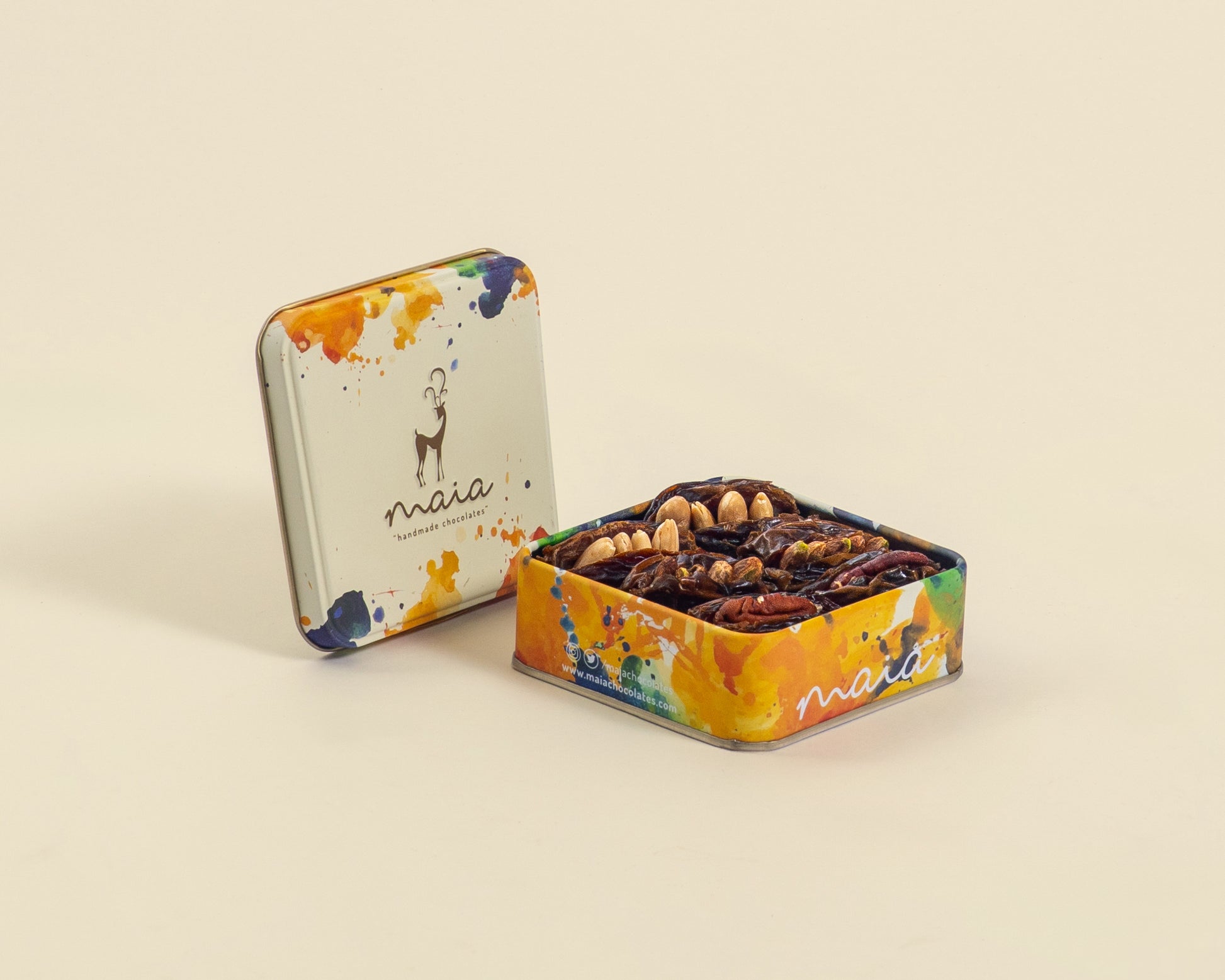 Enjoy a classic combination with our Handmade Dates with Nuts in a Small Metal Box. This 120g box is the perfect little treat to satisfy your sweet cravings.